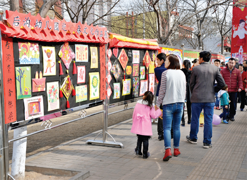 3月3日,保德縣在縣城府前街舉辦了校園文明創(chuàng)建作品展,展出了該縣38所學校選送的學生書法、繪畫、攝影和手工制作等600余件作品,充分展示了學校素質教育的新成果。圖為市民正在觀賞展出作品。(李富永 攝)