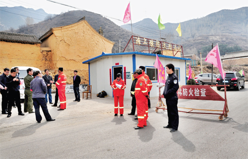 4月6日,代縣灘上鎮(zhèn)防火檢查站消防人員正在對(duì)進(jìn)入山區(qū)的人員、車(chē)輛進(jìn)行護(hù)林防火安全檢查。立春以來(lái),代縣縣委、縣政府大抓護(hù)林防火工作,各鄉(xiāng)鎮(zhèn)實(shí)行鄉(xiāng)鎮(zhèn)干部包村、包片責(zé)任制,組建了30—50人的護(hù)林防火突擊隊(duì),在通往山區(qū)、林區(qū)的各個(gè)交通要道設(shè)立護(hù)林防火檢查站,對(duì)過(guò)往車(chē)輛、人員進(jìn)行護(hù)林防火安全檢查和護(hù)林防火宣傳教育。(楊繼興 攝)