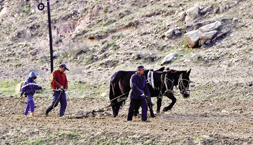 寧武縣東馬坊小學(xué)五年級(jí)學(xué)生孫存政,經(jīng)常利用節(jié)假日回到地處高寒山區(qū)的達(dá)達(dá)店村,做些力所能及的家務(wù)和農(nóng)活,既幫了家里的忙,又增加了社會(huì)實(shí)踐知識(shí)。圖為“五一”期間,小孫跟爺爺學(xué)耕田。(薛慧 攝)