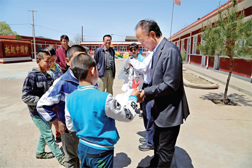 2006 年由省委組織部扶貧工作隊和省僑辦牽線搭橋,由海外華人創(chuàng)建的欣欣教育基金會向靜樂縣康家會小學捐贈一萬美元資助建設(shè)新校舍,新校舍于2006 年8 月份投入使用。5 月17 日,該基金會副會長丁永慶一行深入靜樂縣,走訪基金會當年捐建的康家會小學。圖為基金會工作人員在和學生交談,了解學?,F(xiàn)在存在的問題和困難,希望與該校保持長期固定的聯(lián)系,以便進一步的交流和幫助。(閆曉梅 攝)