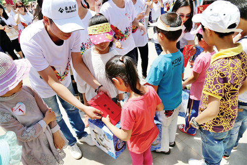 5 月30 日上午,共青團五臺縣委舉辦了“獻禮華誕、慈善同行”公益活動。泰康人壽山西分公司帶著對老區(qū)人民的深情厚誼,向該縣豆村鎮(zhèn)新莊小學(xué)捐贈助學(xué)金2 萬元、課桌椅150 套、書本文具1506 件、衣物601 件和健身設(shè)施1 套。圖為貧困學(xué)生在領(lǐng)取助學(xué)金。(王鐵虎 攝)