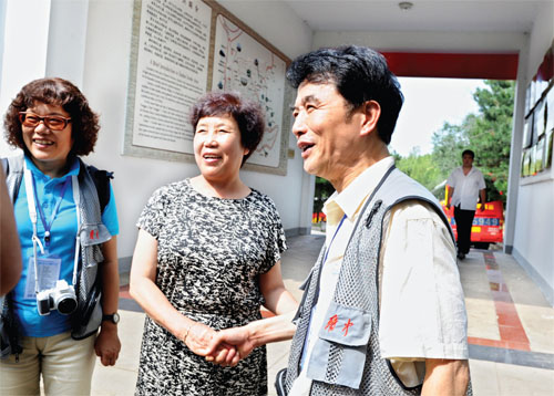 7月25日,大寨集團董事長郭鳳蓮向前來采訪的記者們介紹情況