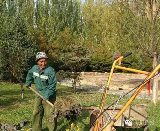 (一)公園美容師。金秋忻府創(chuàng)衛(wèi),人民公園靚了。這離不開(kāi)園林工人和環(huán)衛(wèi)工人的辛勤付出。(陳泉生 攝)