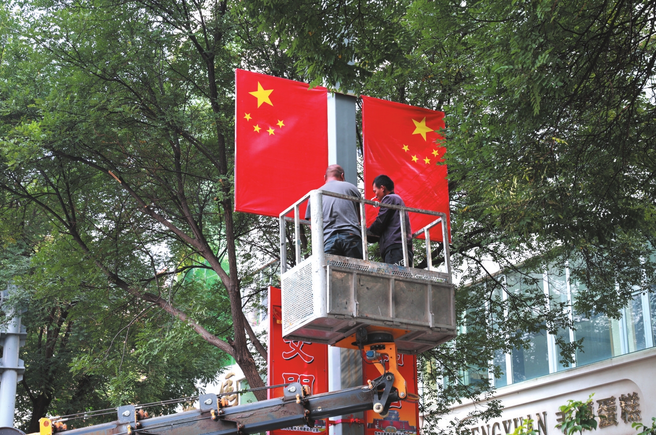 忻州城區(qū)街頭懸掛國(guó)旗,節(jié)日氛圍感拉滿。張存良攝
