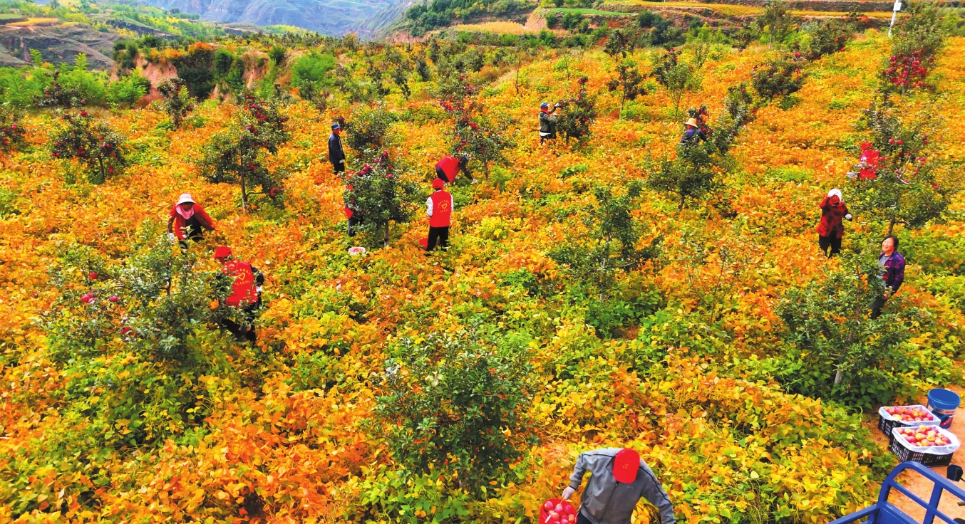 保德縣喬家塔村蘋果迎來收獲季。李挺 楊麗萍攝
