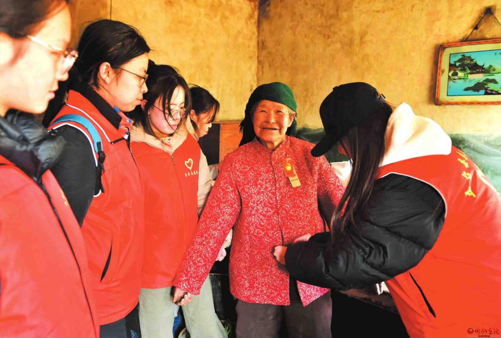 近日,五臺(tái)縣志愿者協(xié)會(huì)協(xié)同工業(yè)園社區(qū)志愿者和大學(xué)生志愿者,帶著精心準(zhǔn)備的年貨,走進(jìn)溝南鄉(xiāng)翟子溝村、東雷鄉(xiāng)東山底村、陳家莊鄉(xiāng)王城村等地,看望慰問十二戶孤寡老人和困難家庭,向他們送上社會(huì)各界的關(guān)懷和新春的溫暖祝福。圖為志愿者為腿腳不便的高齡老人試穿新衣服。(盧俊華 攝