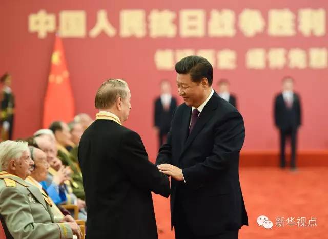 2015年9月2日,習近平在北京人民大會堂向30名抗戰(zhàn)老戰(zhàn)士老同志、抗戰(zhàn)將領、幫助和支持中國抗戰(zhàn)的國際友人或其遺屬代表頒發(fā)中國人民抗日戰(zhàn)爭勝利70周年紀念章并發(fā)表重要講話。新華社記者 謝環(huán)馳攝