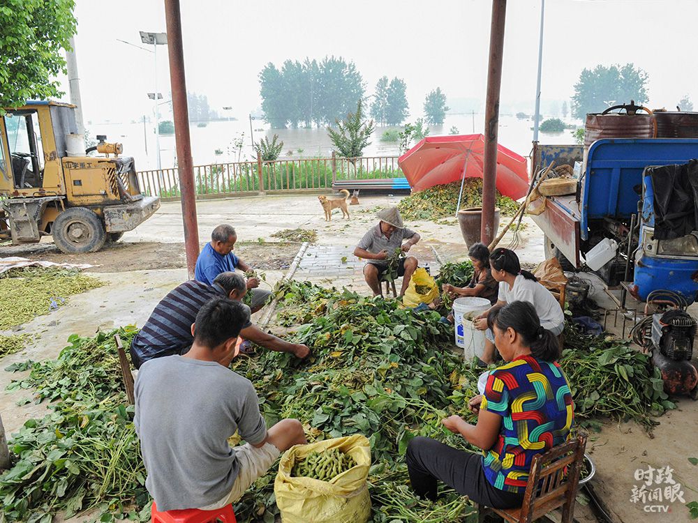 △蒙洼蓄洪區(qū)村民整理搶收回來的毛豆