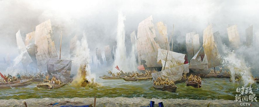△陳列在紀(jì)念館里的渡江戰(zhàn)役主題壁畫
