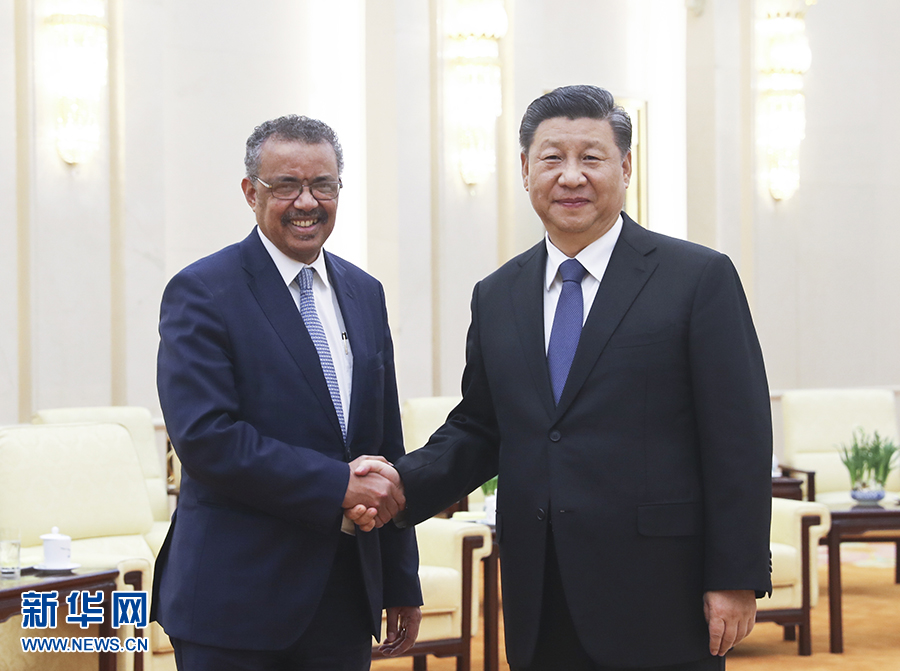 1月28日,習(xí)近平在北京人民大會(huì)堂會(huì)見世界衛(wèi)生組織總干事譚德塞。 新華社記者 鞠鵬 攝