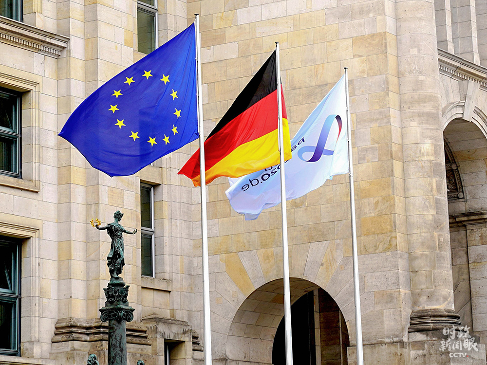 △今年7月1日起,德國(guó)接任歐盟輪值主席國(guó),為期半年。這是德國(guó)國(guó)會(huì)大廈前從左到右依次掛出代表歐盟、德國(guó)和德國(guó)擔(dān)任歐盟輪值主席國(guó)的三面旗幟。