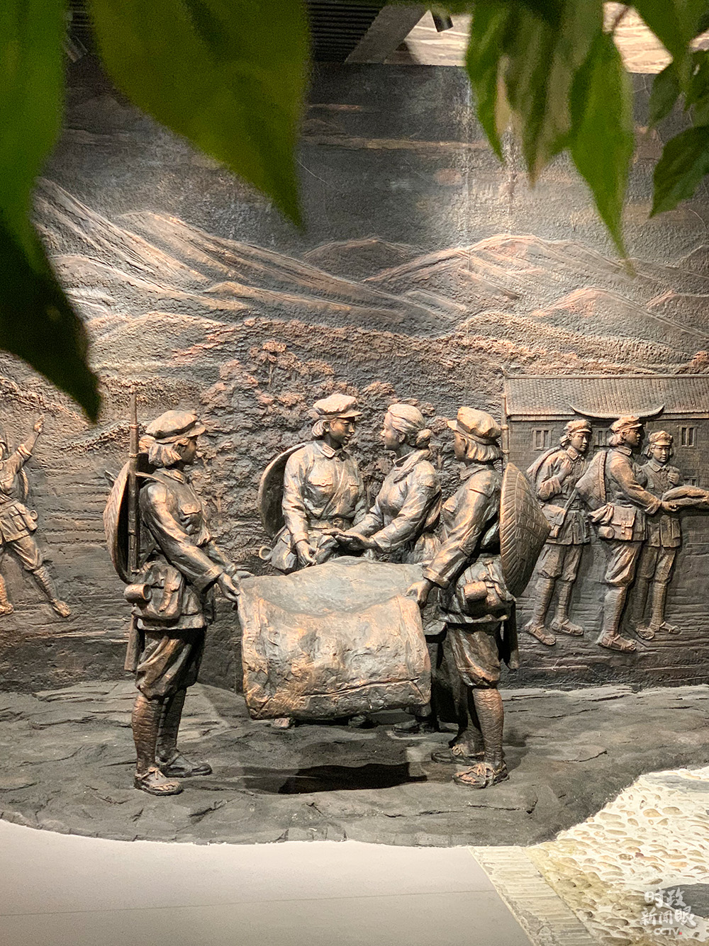 △“半條被子的溫暖”專題陳列館內(nèi)的主題雕塑。(總臺央視記者邢彬拍攝)