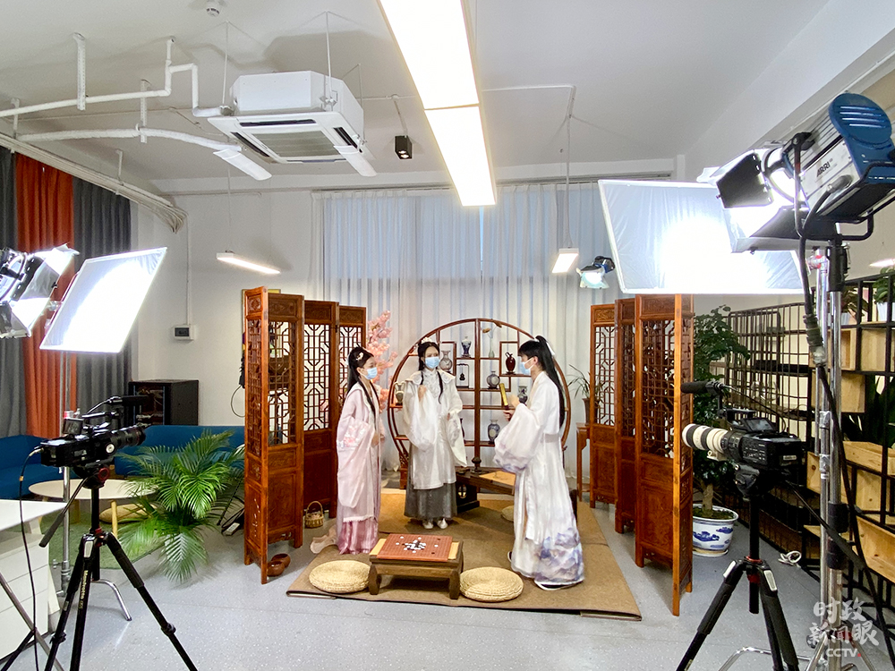 △馬欄山視頻文創(chuàng)園準(zhǔn)備錄制漢服文化節(jié)目。(總臺央視記者郭曉龍拍攝)