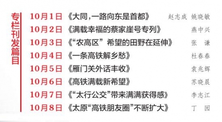 高鐵速度跑出了便捷和美好,并京“同城”夢想成真,成為“速度改變生活”的樣本,京晉經(jīng)濟(jì)文化交流更加密切;“蔡家崖號”穿行呂梁山間,為沿線貧困地區(qū)提供著源源不斷的脫貧助力,帶來看得見的變化、穩(wěn)得住的幸福。今年國慶期間,本報開設(shè)《坐著火車看山西》專欄,記者踏上火車,體驗生活,假期8天刊發(fā)8篇稿件,展示“十三五”期間我省經(jīng)濟(jì)社會發(fā)展的巨大變化。