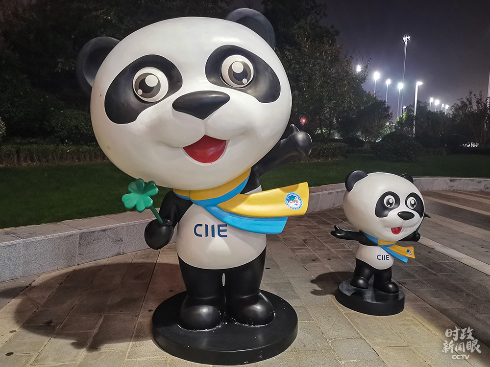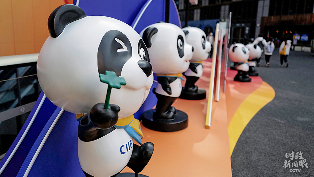 △進(jìn)博會(huì)吉祥物“進(jìn)寶”是亮眼元素。(總臺(tái)央視記者王萌萌、國(guó)廣記者李晉拍攝)