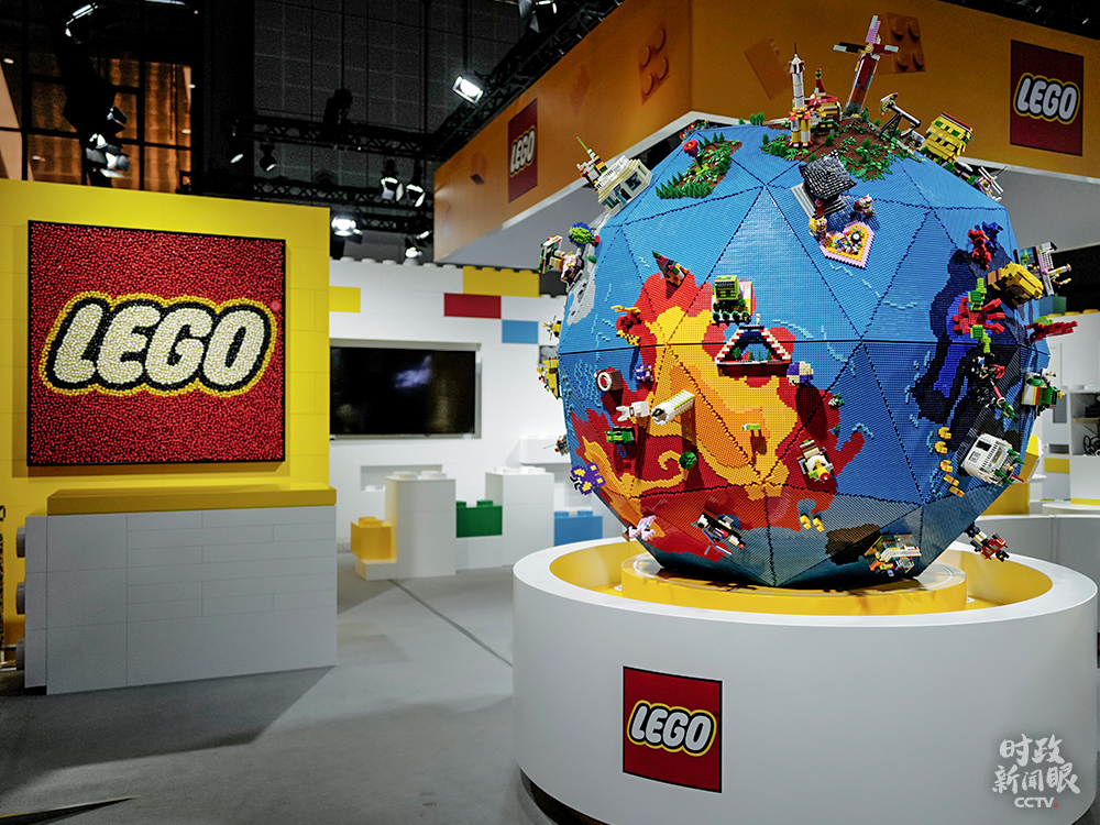 △這是進(jìn)博會(huì)消費(fèi)品展區(qū)的“樂(lè)造星球”展品,高2.7米(含底座),共包含62750塊樂(lè)高積木顆粒,顆??傊亓窟_(dá)106千克。(總臺(tái)國(guó)廣記者李晉拍攝)