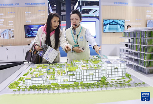 11月6日,參觀者在住博會上了解綠色低碳好房子的展出內(nèi)容。(新華社記者 潘旭 攝)