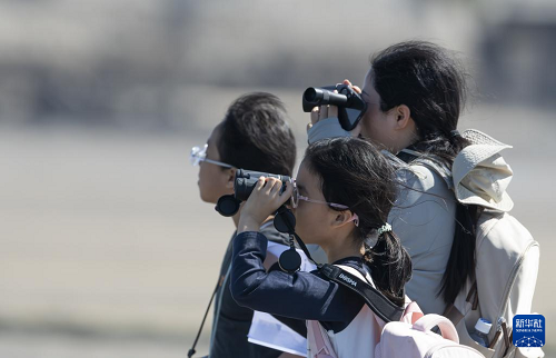 11月9日,泉州市觀鳥學(xué)會(huì)組織小觀鳥愛好者觀測勺嘴鷸。(新華社記者 魏培全 攝)