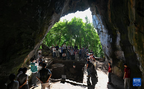 11月8日,考古專家在三亞落筆洞遺址觀察發(fā)掘現(xiàn)場。(新華社記者 郭程 攝)