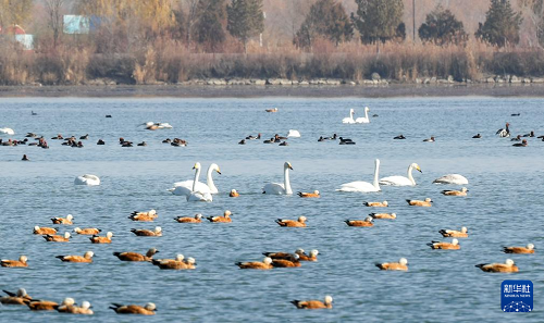入冬以來,大批候鳥陸續(xù)飛抵位于甘肅省張掖市的張掖黑河濕地國(guó)家級(jí)自然保護(hù)區(qū)高臺(tái)段休憩覓食。作為全球9條候鳥遷徙通道之一的中亞通道的重要中轉(zhuǎn)站,每年約有18萬至25萬只水禽在張掖黑河濕地國(guó)家級(jí)自然保護(hù)區(qū)集結(jié)、停歇。