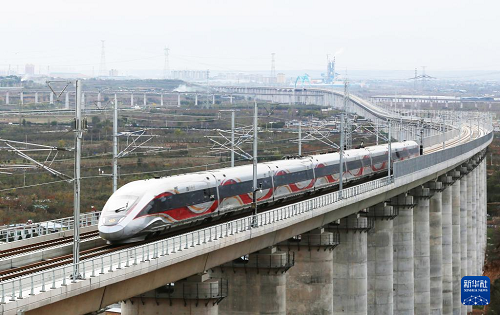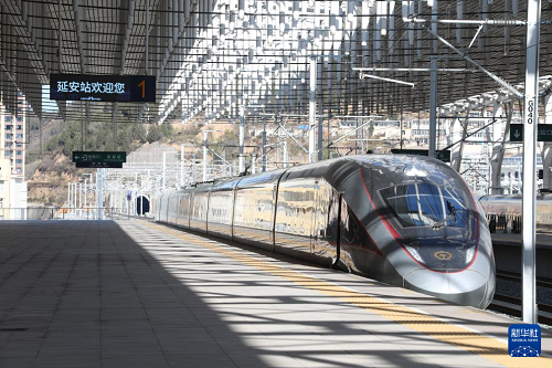 11月17日,一列試驗(yàn)動(dòng)車(chē)組抵達(dá)延安站。(新華社發(fā) 張黎芝 攝)