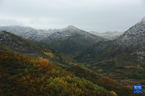 這是2025年10月17日在平?jīng)鍪嗅轻紖^(qū)拍攝的太統(tǒng)崆峒山國(guó)家級(jí)自然保護(hù)區(qū)深秋初雪景色。(新華社發(fā) 吳希會(huì) 攝)