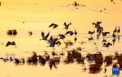 11月29日,黑頸鶴在大山包黑頸鶴國家級自然保護(hù)區(qū)內(nèi)的大海子濕地棲息。(新華社發(fā) 陳熙 攝)