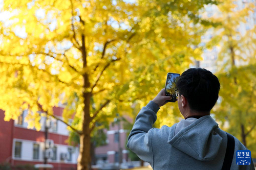 11月30日,市民在上海市黃浦區(qū)局門路拍攝銀杏。(新華社記者 王翔 攝)