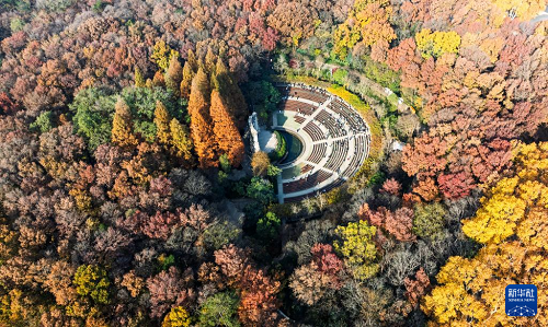 11月30日拍攝的江蘇南京鐘山風(fēng)景名勝區(qū)音樂臺初冬景觀(無人機(jī)照片)。(新華社發(fā) 孫忠南 攝)