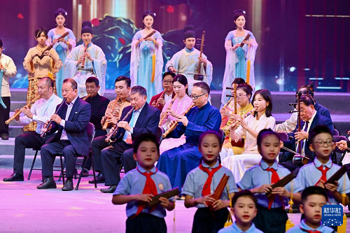 12月10日,南音社團代表及中小學生在“南音薪傳 四海弦歌”專場演出上表演。(新華社記者 姜克紅 攝)