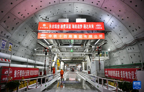 12月15日,中鐵十四局建設(shè)者在海平面下91米進行施工作業(yè)。(新華社記者 李紫恒 攝)