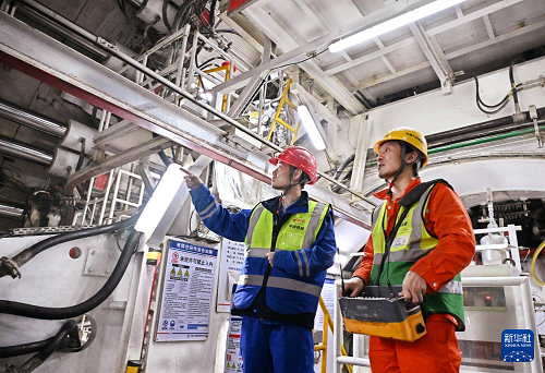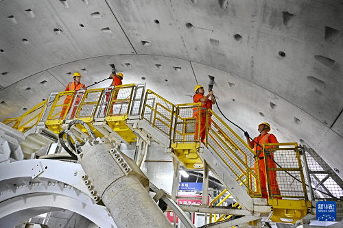12月15日,中鐵十四局建設(shè)者在海平面下91米進行管片安裝作業(yè)。(新華社記者 李紫恒 攝)