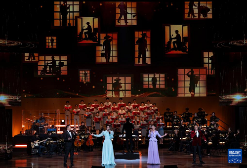 12月16日,在北京二七劇場(chǎng)舉辦的“中國(guó)夢(mèng)·勞動(dòng)美”2026新年音樂會(huì)上,演員演唱《光芒閃耀的你》。(新華社記者 才揚(yáng) 攝)