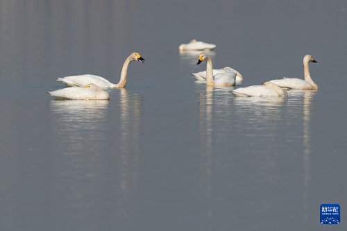 12月16日,天鵝等候鳥在安徽省滁州市明湖公園休憩。(新華社記者 張端 攝)