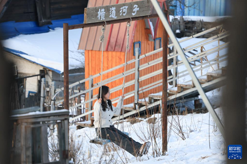 12月24日,游客在橫道河子鎮(zhèn)體驗雪地秋千。(新華社發(fā) 徐率 攝)