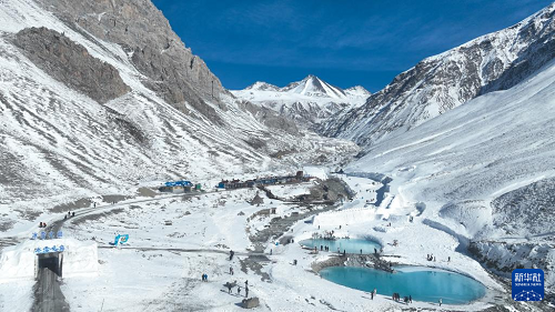 12月25日,游客在青海省海北藏族自治州門源回族自治縣的崗什卡雪峰景區(qū)內游玩。(新華社記者 張龍 攝)