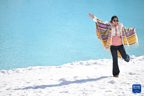 12月25日,游客在青海省海北藏族自治州門源回族自治縣的崗什卡雪峰景區(qū)內拍照。(新華社記者 張龍 攝)