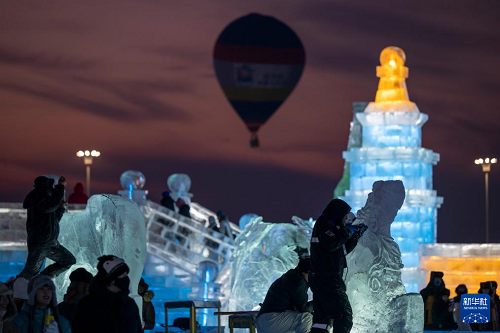 1月3日,在哈爾濱冰雪大世界進行的第37屆中國·哈爾濱國際冰雕比賽進入第二天賽程,來自12個國家的76位選手在嚴寒中精雕細琢,參賽作品已芳容初現(xiàn)。