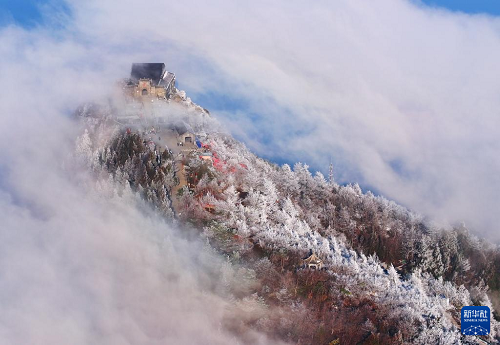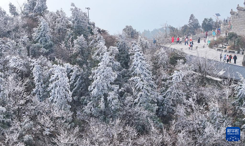 連日來,湖南省衡陽市南岳衡山風(fēng)景區(qū)出現(xiàn)霧凇云海景觀,壯美如畫的景色吸引眾多游客前來觀賞游玩。