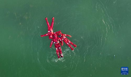 1月17日,市民在銀川文旅集團(tuán)覽山公園體驗“冰浮小龍蝦”特色項目(無人機(jī)照片)。(新華社記者 王鵬 攝)