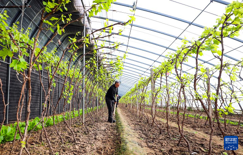 1月20日,河北省唐山市海港經(jīng)濟(jì)開(kāi)發(fā)區(qū)王灘鎮(zhèn)農(nóng)民在葡萄大棚松土。(新華社發(fā) 劉滿倉(cāng) 攝)