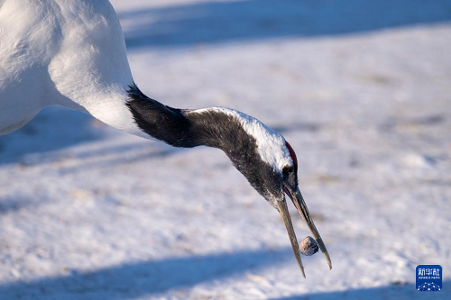 冬日時節(jié),黑龍江扎龍國家級自然保護區(qū)內白雪皚皚,丹頂鶴在寒風中覓食,上演一幅鶴舞冬日的純凈畫面。