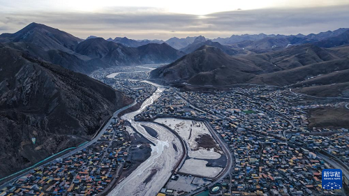 這是1月30日拍攝的青海省玉樹藏族自治州雜多縣冬景風(fēng)光(無人機(jī)照片)。(新華社記者 齊芷玥 攝)