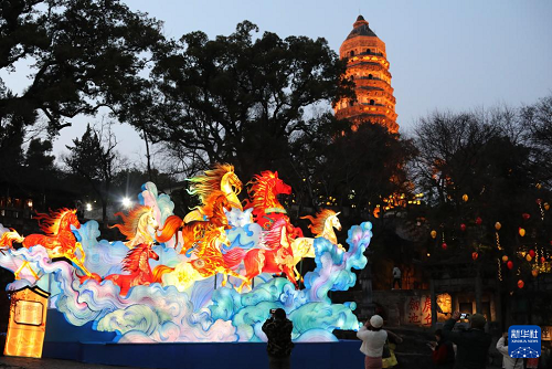 2月11日,2026年蘇州虎丘山燈會正式亮燈迎客,游客賞燈拍照。(新華社發(fā) 杭興微 攝)