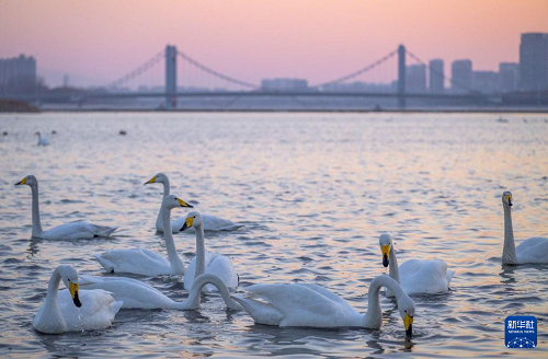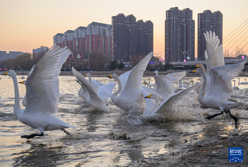 | 遼寧朝陽:大凌河畔 天鵝翩躚 |