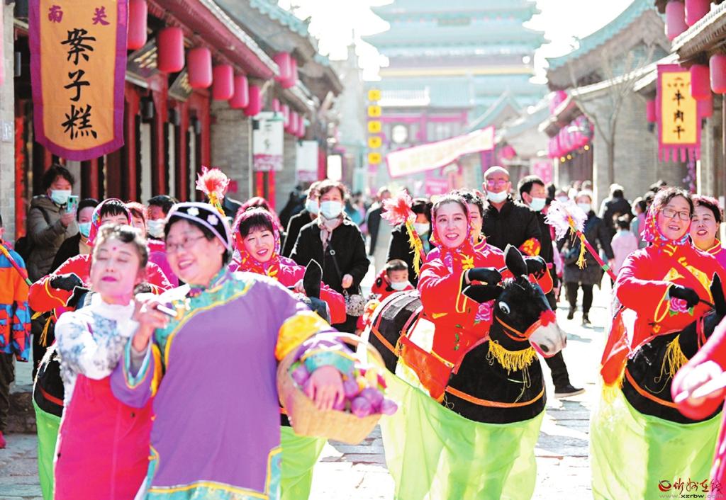 2月17日,忻州古城,民間文藝表演隊(duì)正在街頭巡演。春節(jié)期間,忻州古城舉辦“逛古城、品文化、識(shí)忻州”旅游文化活動(dòng),雄獅起舞、八音吹奏、秧歌表演等一系列富有當(dāng)?shù)靥厣拿耖g文藝活動(dòng)精彩紛呈,吸引了眾多旅游者游覽觀賞,整個(gè)古城呈現(xiàn)出一派喜慶祥和的節(jié)日氣氛。 (李兆民 攝)