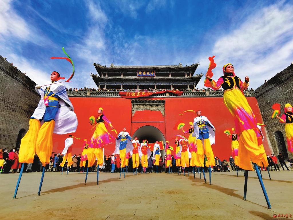 為豐富和活躍廣大群眾文化生活,營(yíng)造歡樂(lè)喜慶、文明祥和的節(jié)日氛圍,近日,忻州古城迎來(lái)了定襄縣文藝展演活動(dòng)。 定襄社火和各類傳統(tǒng)民俗活動(dòng)歷史悠久,各類極具地方特色的民俗文化活動(dòng)觀賞性很強(qiáng),二兔藝術(shù)團(tuán)盡情舞動(dòng),表情歡悅;老干部藝術(shù)團(tuán)鶴發(fā)童顏,精神抖擻;夢(mèng)之藍(lán)旗袍隊(duì)舉止高雅,體態(tài)大方;紅燈籠高蹺隊(duì)腳踏雙木,輕松自如……有趣的互動(dòng),讓大家樂(lè)在其中。喜慶的樂(lè)曲,歡快的表演,充分展現(xiàn)了人民群眾的新生活、新風(fēng)尚、新面貌,迎來(lái)觀眾一片喝彩聲,讓游客感受到了定襄的民俗文化魅力。(張存良 攝) (責(zé)任編輯:盧相?。?br> |