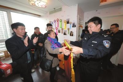 向大巧的父母為民警送上錦旗。
