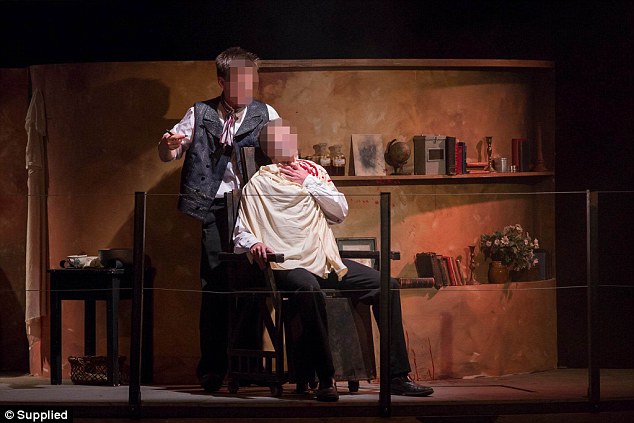 這周三,新西蘭的一個(gè)私立學(xué)校的劇團(tuán)也排了這部劇,然而正是演出的時(shí)候,這個(gè)割喉場(chǎng)景出現(xiàn)了意外。這兩名扮演受害者的學(xué)生演員被當(dāng)場(chǎng)割喉,血濺舞臺(tái)。因?yàn)榘凑站巹〉牧鞒?,兩名受害者被割喉后就被通過(guò)椅子下面的機(jī)關(guān)門(mén)送到了舞臺(tái)下,整部劇之后還照常演出。臺(tái)下的不少觀眾之后接受采訪時(shí)表示,他們當(dāng)時(shí)還以為劇組用的是假血,還在感嘆他們做效果做的如此逼真。事后才知道,那些都是真血。