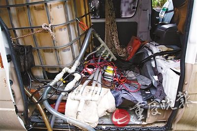 經(jīng)審訊,嫌疑人陳某曾因盜竊柴油被判入獄,在獄中認識張某、張某某。3人出獄后,在瀘州買了一輛二手福田面包車,經(jīng)過精心改裝并換上假牌照,往返于川渝兩地,在G93渝瀘高速各服務區(qū)專門盜竊貨車油箱里的柴油。偷油設備自動化,改裝車內裝著好幾個大油桶,用一根塑料管,通過一個油泵,把貨車油箱里的油直接抽到桶里。油泵電源由蓄電池提供,為避免發(fā)動機聲音過大,油泵還用舊衣服層層包裹。馬力大的油泵,1分鐘就能把貨車滿滿一箱油抽光。為了更快抽油,嫌疑人甚至并聯(lián)4個大油泵。與以往拿著吸油管的小賊比,這樣的裝備偷油速度快10倍,比加油速度快幾倍。6月以來,該團伙僅在江津范圍內就瘋狂作案20余起,盜得柴油5000余升,涉案金額數(shù)萬元。陳某落網(wǎng)當天,警方在面包車上查獲的1000余升柴油是陳某獨自在珞璜服務區(qū)連續(xù)作案5起盜得。